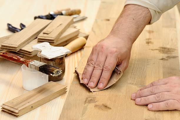 The surface of the wood is thoroughly sanded to remove any rough edges and to prepare it for coating. This ensures a smooth, even texture for flawless finishing.